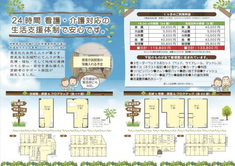 ※2人で入居をお考えの方は、食費87,600円 管理費35,400円となります。